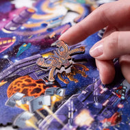Quezzle Space Adventures is a brand-new entertainment format. In one box you will find an amazing wooden puzzle with 1000 intricate pieces and a board quest game with 3D spaceships, interesting tasks, an exciting storyline, and additional arcade games.